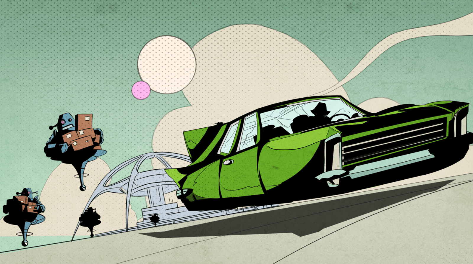 Omni Exhibition Cannes Concepts and finished imagery and animation for the Omni Exhibition in Cannes.Client: Glass Onion. Animation Tests Final Concepts How the content was used on-site Animation Sequence Created For Exhibition Style Guide Thumbnail Storyboards Layouts Shadow Guides Vehicle Design Cover & Title Card Colour Boards Animated Sequence